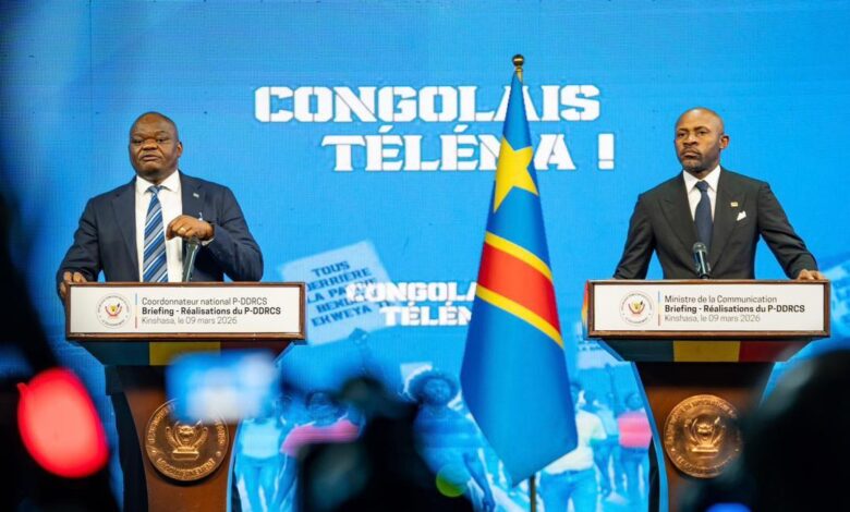Le Programme de Désarmement, Démobilisation, Relèvement Communautaire et Stabilisation (Programme de Désarmement, Démobilisation, Relèvement Communautaire et Stabilisation) affirme avoir enregistré des progrès significatifs au cours de l’année 2025 dans la mise en œuvre de ses activités en République démocratique du Congo.Lors d’un briefing presse organisé le 9 mars 2026 à Kinshasa, le coordonnateur national du programme, Jean de Dieu Ntanga Ntita, a présenté les principaux résultats obtenus. La rencontre s’est tenue en présence du ministre de la Communication et Médias, Patrick Muyaya Katembwe.Selon le responsable du programme, plus de 5 000 personnes ont bénéficié des différentes actions menées par le P-DDRCS durant l’année écoulée. Parmi elles, environ 5 000 combattants ont été démobilisés et 4 875 individus désarmés. Le programme a également permis de récupérer plus de 5 000 munitions et divers effets de guerre, ainsi qu’environ 1 000 armes qui étaient entreposées dans les dépôts des Forces armées de la République démocratique du Congo.